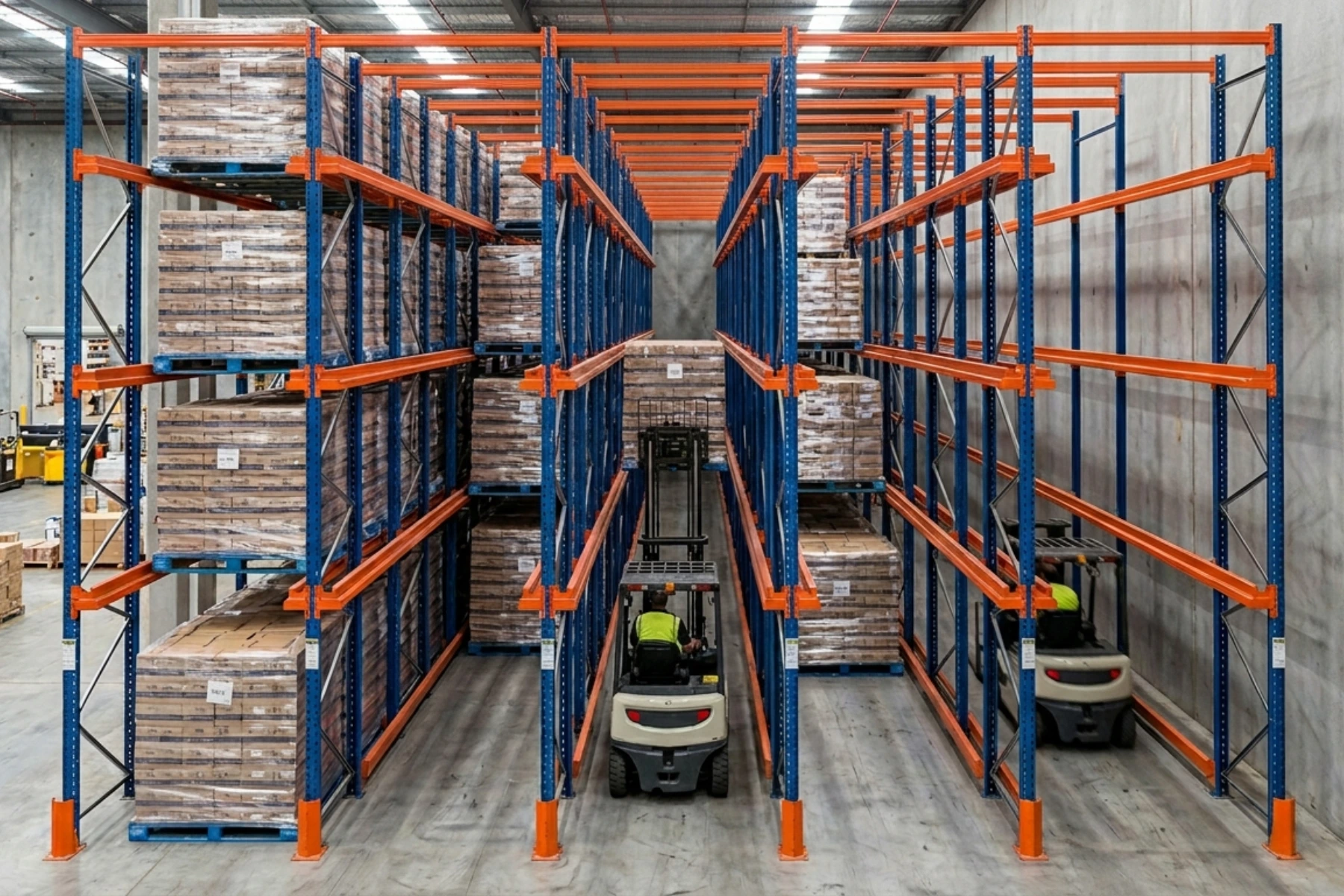 Drive-In Pallet Racking is built for high-density storage. It uses a LIFO system to maximize warehouse space efficiency. Forklifts enter the racking structure directly for loading and unloading pallets. Best suited for bulk storage of similar products, it delivers strong space-saving performance for warehouse pallet racks.